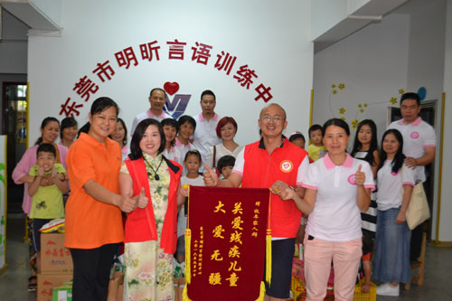 今天下午明昕言语训练中心里迎来了一群爱心人士,他们分别是来自园洲乐善慈善会、牧羊家人群、金莲台素食馆、石龙镇金福临爱心欢乐群的爱心人士。