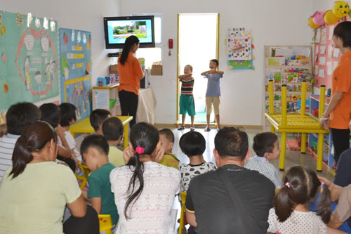 为使家长更好地了解孩子在康复中心里的学习生活情况,在各位家长进入他孩子所在的班级后,老师们先是对今天的教学目标向家长做了一个简单的讲解,然后在接下来的时间里,老师向家长们细致全面的展示了他们孩子平时在中心所学内容和教学办法,每班的各个活动环节,孩子和家长的积极地参与,课堂气氛十分的活跃。